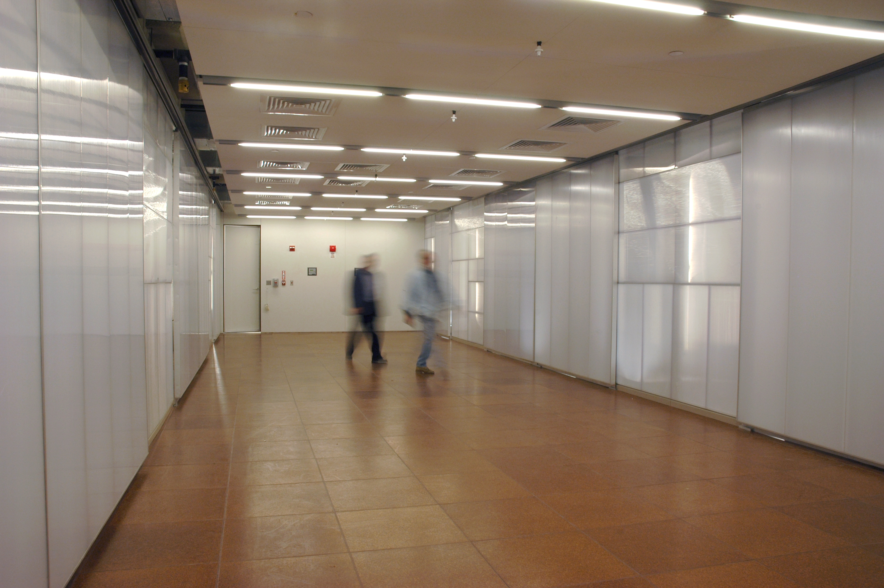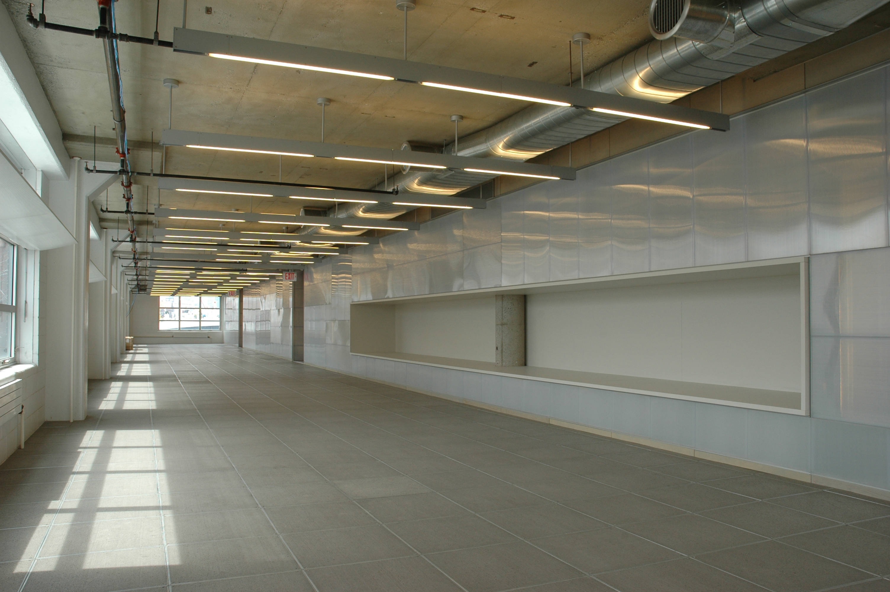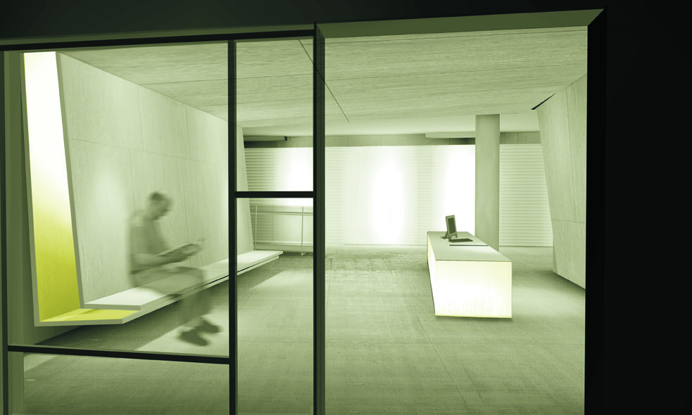 HITN is a non-profit organization made up of a network of non-commercial facilities to advance the educational, social, cultural, and economic aspirations of American Hispanic residents. The project is a direct result of experimentation with materials and inversion of spatial norms corresponding to the new needs of the program. The mechanical, electrical and cabling systems, which would typically be housed in architecturally inaccessible dark plenum zones, are turned on their side and instead create a striated system of space that accommodate functional adjacencies. Polycarbonate, deployed to exaggerate its spectral effects, both transmits light from the perimeter and acts as supplemental ambient light source. The large interactive wall, which connects the entry to the functional broadcast “plaza” on the second floor, is used to identify the cultural makeup of the TV Station. Regions of concentrated light rays that follow the passer by and create an animated and changing environment interrupt its surface, which resembles blue sky pitched sideways. The project was designed in collaboration with Gia Daskalakis and Omar Perez from DAS:20.
